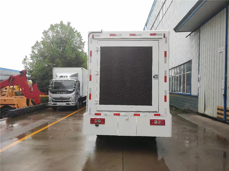 福田H2宣傳車廂整體采用鋼骨架沖壓件骨架;內蒙皮為4.0鋁塑板;車廂地板為18mm竹膠板后門板為18mm復合板;加裝氣彈簧2支、百頁窗、內藏門鎖。車廂結構車廂外觀為圓弧形,整體外觀好看。