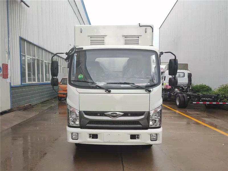 碳鋼骨架,外蒙1.2冷軋鋼板,基層防銹漆,掛膩子,外噴專用車漆。廂體內部木紋板內飾,廂內LED照明,地板鋁花紋板。