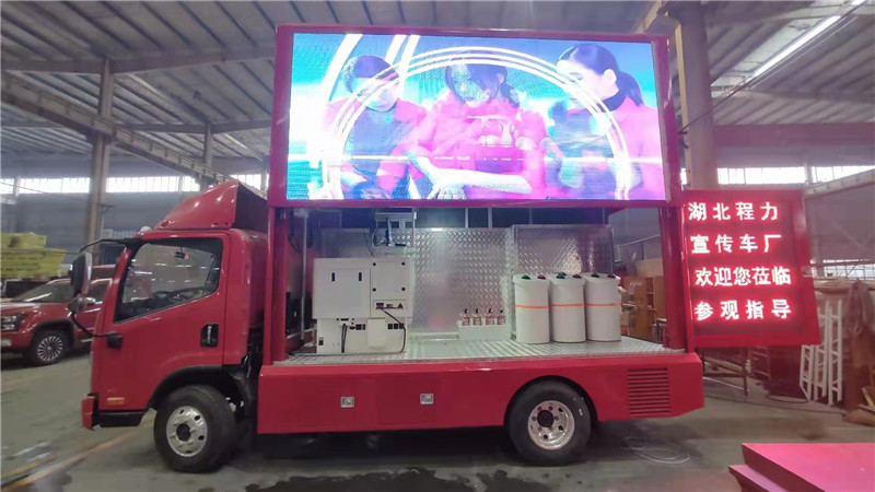 配置 | 該車是用于廣告宣傳和科普宣傳的專用車輛。車輛顏色可選;文字噴涂位置可變化。兩側可選裝LED屏或側展;兩側均可選裝:LED升降或者不帶升降屏, 滾軸燈箱,條屏,活動舞臺;后部可選裝LED條屏或燈箱或后展,通風口;前部選裝LED條屏,左右后可選裝上翻遮陽板,下翻吧臺,亦可可選裝開單或雙開門,或者封閉;選裝頂帽造型和尾部踏板,隨底盤選裝前霧燈,選裝輪輞罩,選裝不同顏色前保險杠,該車輛顏色可選;文字噴涂位置可變。 | ||