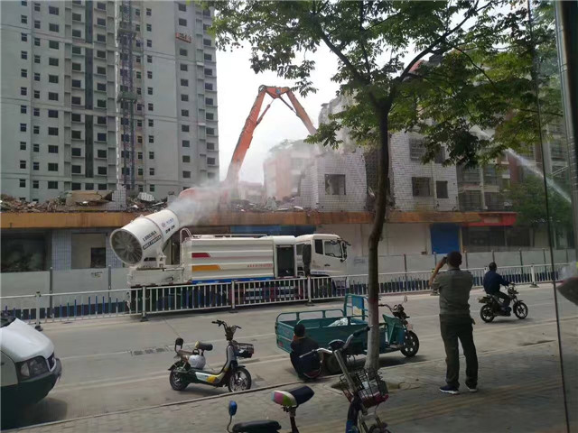“感覺一眨眼,滿天的揚塵全部被濃濃的水霧給壓蓋下去了!”市民張先生觀看了整個拆遷除塵全過程,一臺車載“巨炮”對著建筑廢墟發射的不是炮彈,而是清新彌散的水霧,很快形成漫天的水幕,施工激起的揚塵迅速消失,空氣也變得干凈。