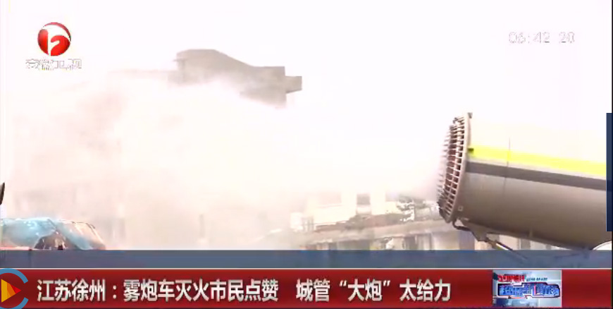 昨日徐州市一餐飲店起火,正好一臺霧炮車在附近拆遷降塵,聽到市民說司機立馬掉頭趕到失火現場用霧炮滅火,因救火及時和消