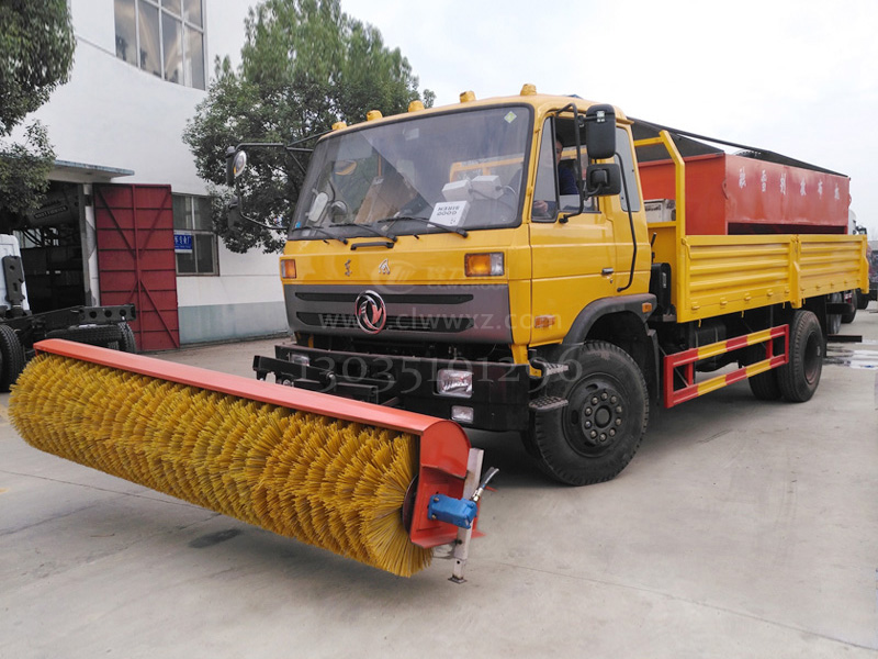 多功能掃雪車,操作人員只要在駕駛室操作即可。當冬季來臨積雪在50毫米內時,把車換裝上掃雪裝置,該車就是一臺掃雪車,操作該機車,可以把道路上的積雪清掃到路邊。