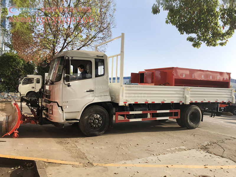 配置 | 用于冬季撒布融雪劑;專用裝置為撒布機.前伸尺寸均為1420mm,后伸尺寸均為900mm.側防護所用材料為Q235A,連接方式為焊接連接;后部防護裝置材料為Q235A,連接方式為焊接連接,斷面尺寸為(mm)50x100,離地高度為490mm.ABS型號:3631010-C2000,4460046440;生產廠家:東科克諾爾商用車制動系統(十堰)有限公司,威伯科汽車控制系統(中國)有限公司.整車長度/前伸/前懸/軸距/后懸/后伸對應關系為(mm):11950=1420+1430+5000+3200+900,11500=1420+1430+4700+3050+900,11170=1420+1430+4500+2920+900,10670=1420+1430+4200+2720+900,10010=1420+1430+3800+2460+900. | ||