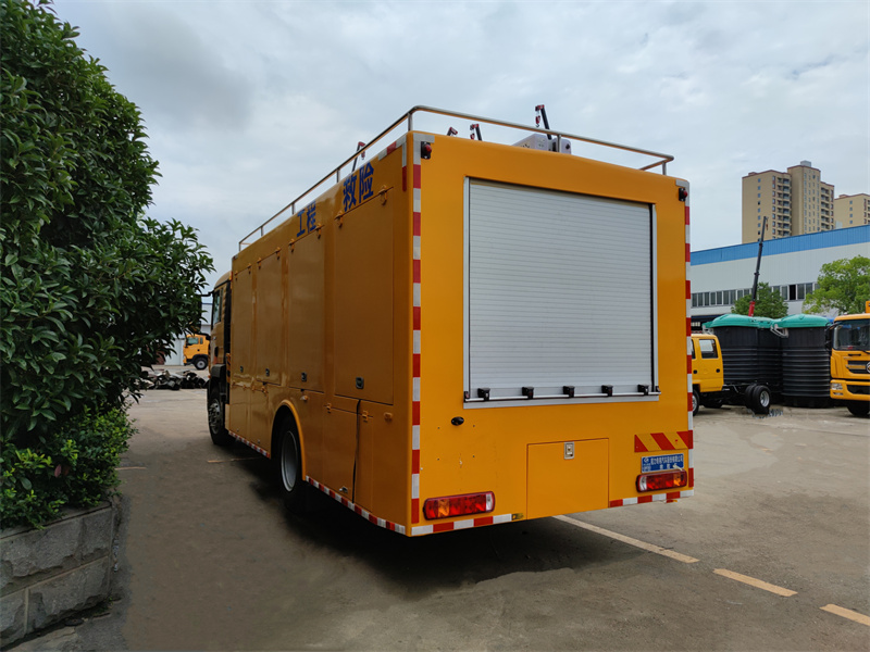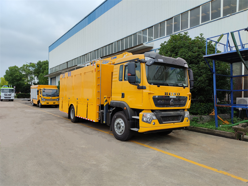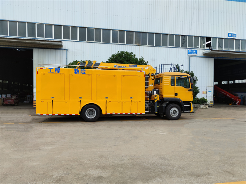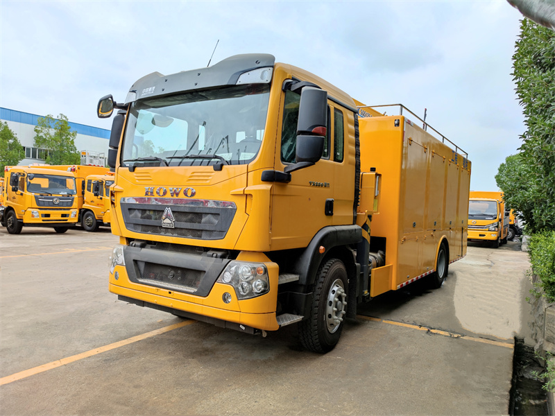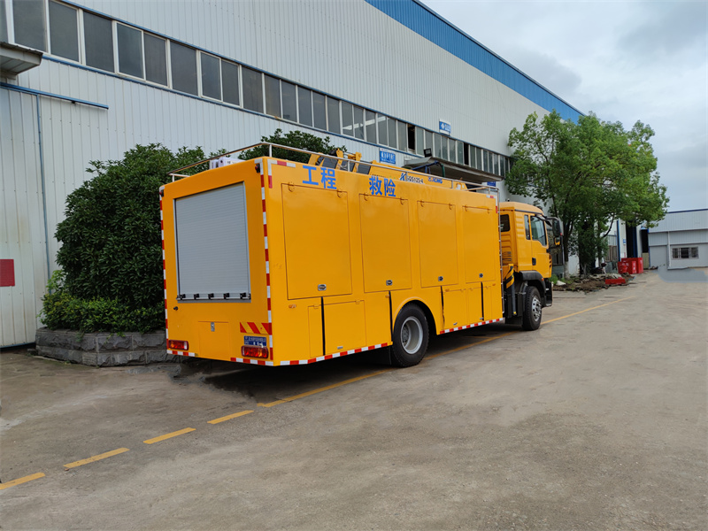 重汽豪沃帶吊防汛排水多功能搶險車,在原有救險車的基礎上加裝了5噸4節臂徐工隨車吊。讓求援功更豐富。