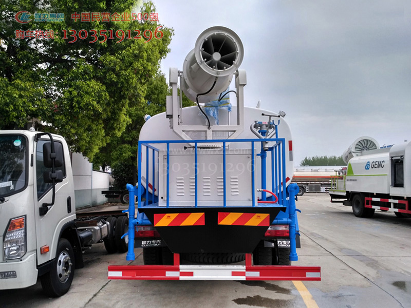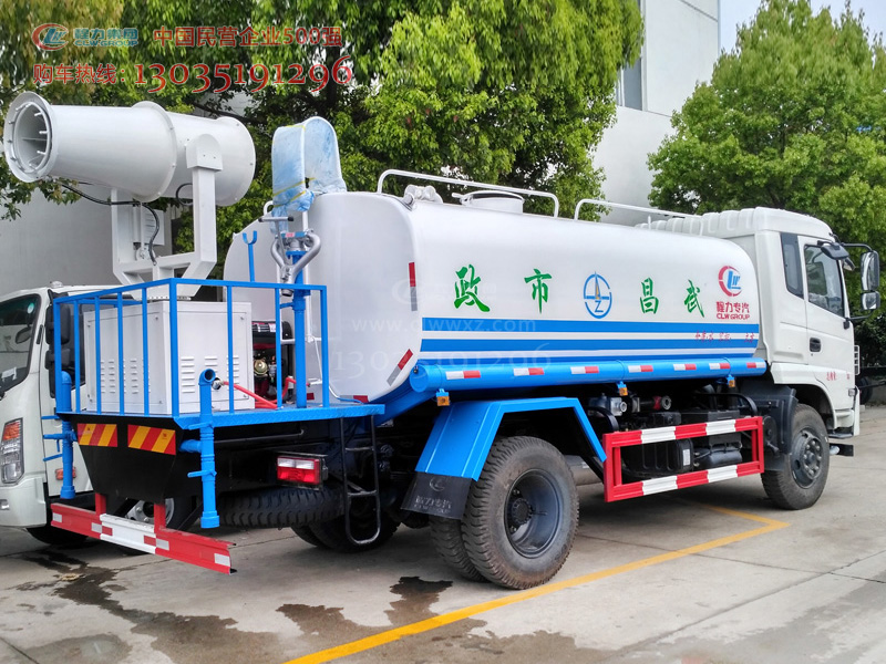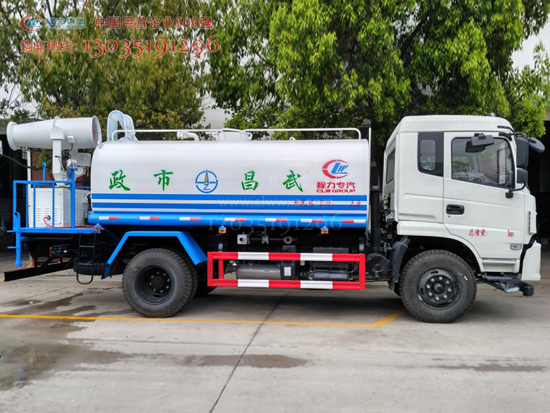 國五10-12方綠化噴灑車、多功能霧炮車,搭載程力專用汽車股份有限公司自主研發生產的霧炮機,兼具綠化噴灑,消防應急,除塵降塵,噴藥消毒等功能,遠程遙控,使用方便。