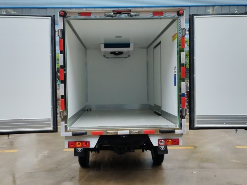 上裝配置:廂體采用內外玻璃鋼,中間8CM高級保溫材料填充,廂體后雙開門,廂體右側單開側門,底部采用塑鋼花紋底板,前部排水孔,門邊條采用迷宮式橡膠密封條,鋁合金型材包邊,不銹鋼包角,不銹鋼門鎖,不銹鋼門框及合頁,廂體內節能LED照明燈,廂體內直角包邊,其余標配。