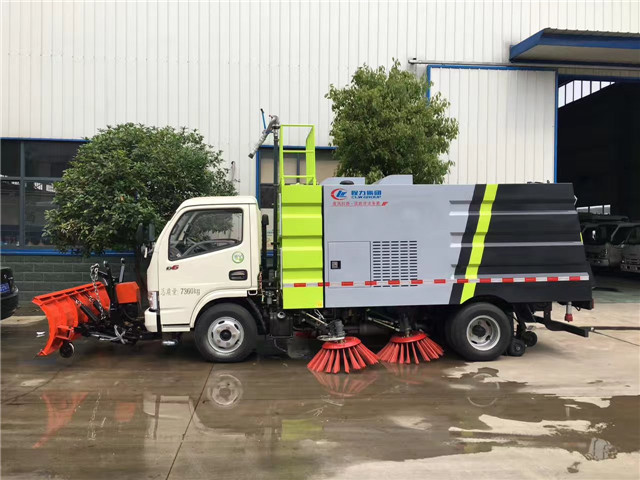 東風(fēng)5方掃路車,底盤型號(hào)為:EQ1041SJ3BDF,發(fā)動(dòng)機(jī)型號(hào)CY4BK551國(guó)五環(huán)保75KW發(fā)動(dòng)機(jī),軸距為:3308,輪胎規(guī)格,7.00-16。上裝配置:不銹鋼垃圾箱容積4立方,不銹鋼清水箱容積1.5立方,五十鈴副發(fā)動(dòng)機(jī)(JX493G,57KW),伊頓(美國(guó))擺線馬達(dá),海普瑞斯電磁閥組(美國(guó)合資),控制開(kāi)關(guān)(法國(guó)施耐德),北京大功率風(fēng)機(jī),耐磨液壓油管.灑水電子水泵,液壓管路采用德國(guó)標(biāo)準(zhǔn)技術(shù)密封結(jié)構(gòu)形式,關(guān)鍵控制部件采用法國(guó)施耐德技術(shù)原件,使用壽命長(zhǎng),穩(wěn)定可靠,故障率低;液壓元件采用集成疊加設(shè)計(jì),駕駛室電液集中控制,操作方便;4掃盤有防碰撞 自動(dòng)避讓功能,可根據(jù)地面泥沙嚴(yán)重程度及行車速度選擇掃盤的清掃方式;吸嘴為后置浮動(dòng)式,可自動(dòng)調(diào)節(jié)適應(yīng)地面凹凸不平的狀況;可調(diào)節(jié)的霧狀噴灑水壓塵,在節(jié)水的同時(shí)消除二次污染。車尾部帶箭頭指示燈。根據(jù)需要可加裝2.5米推雪鏟,灑水消防炮,降塵噴霧機(jī)。