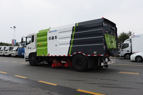 1. 采用吸掃混合的方式收集垃圾,濕式除塵、電液控制,液壓傾翻卸料的作業方式對路面進行清掃作業。
