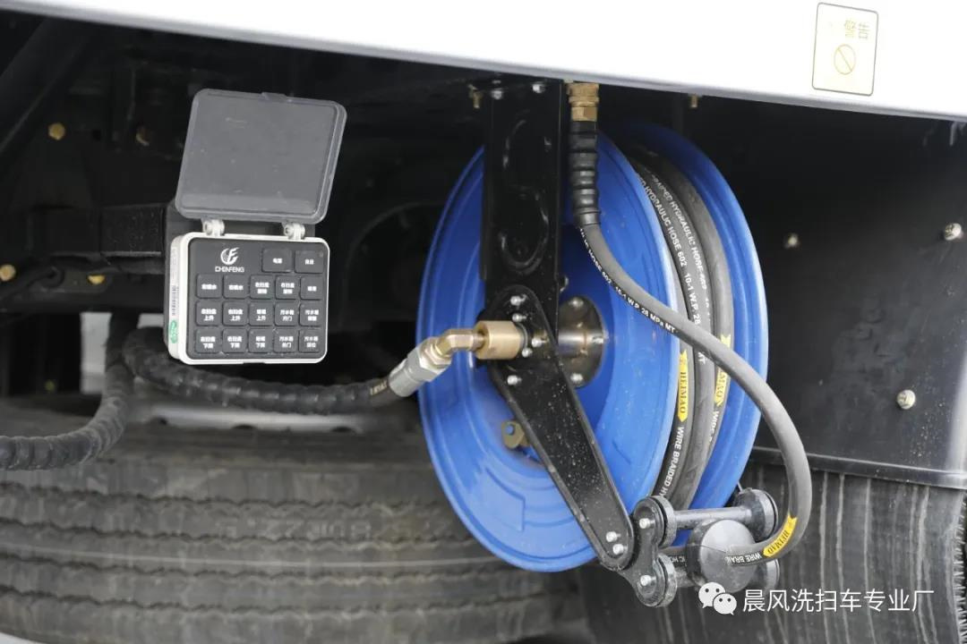 22)側(cè)后部裝有機(jī)械式自動(dòng)卷繞沖洗卷盤(pán),配20m高壓軟管和不同角度的清洗槍?zhuān)捎糜谇逑窜?chē)身和其它設(shè)備