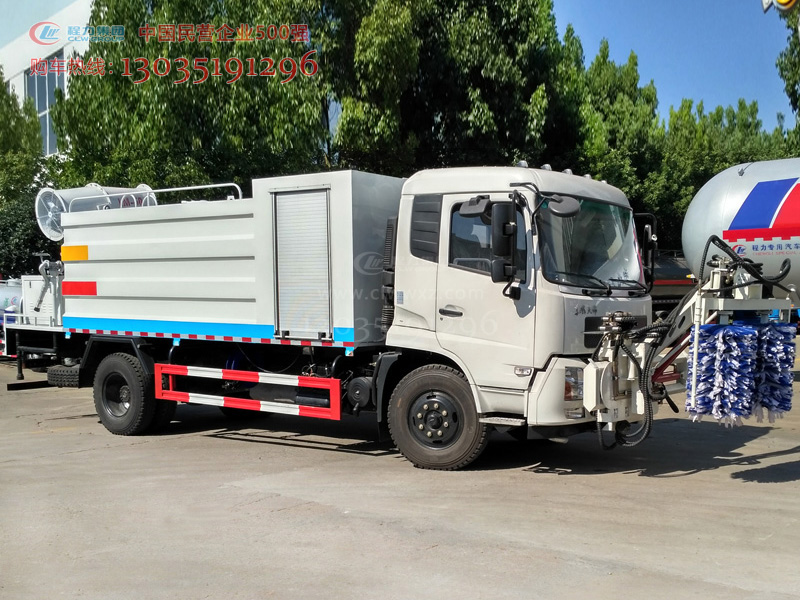 上裝配置:罐體容積:11.3立方,罐體內(nèi)部做防腐,罐體鋼板采用Q235碳鋼鋼材,前沖后灑、側(cè)噴、平臺(tái)高炮、自流閥及消防接頭各1個(gè)、水管2根、標(biāo)配大功率自吸泵 ,可選裝60-80米噴霧機(jī)