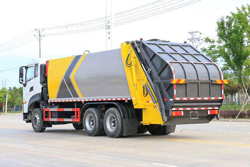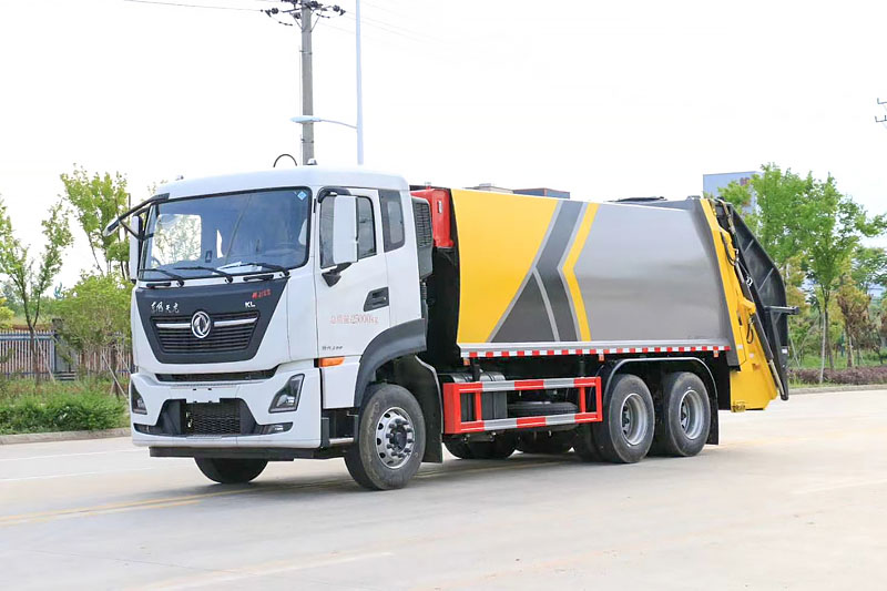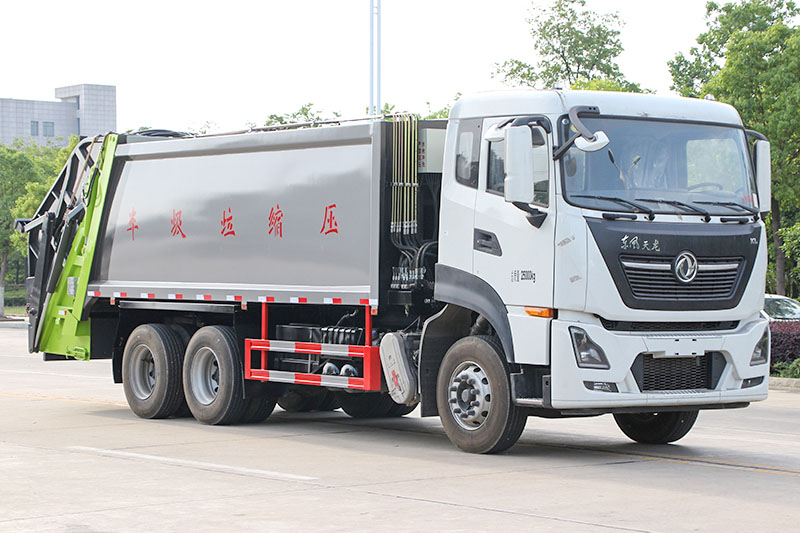 東風天龍后八輪壓縮式垃圾車又被稱為后雙橋壓縮式垃圾車,該車有效容積18-20立方米,雙聯泵,大流量多路閥,壓實閥,裝載量大,手電一體操作模式,操控方便,外形美觀,是城市垃圾收集轉運的常用環衛垃圾車。