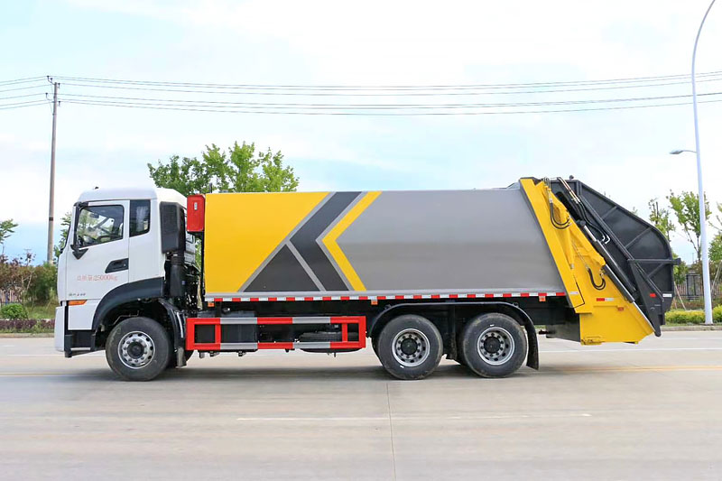 采用Q345錳鋼鋼板,新式弧形箱體,雙聯泵、背壓閥(壓實閥)、油路過濾器,無線遙控,倒車影像,可選掛桶翻轉機構,氣控密封蓋、三角斗、全密封大落地斗、擺臂裝置等。