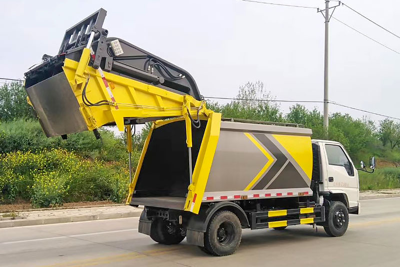 專用功能:廂體容積6立方,邊4底4,揚(yáng)州中梅多路閥,合肥油泵,帶CAN一鍵操作系統(tǒng),手自一體控制方式,具備雙方蠕動壓縮功能,后翻轉(zhuǎn)可選掛240L塑料垃圾桶或圓鐵桶翻轉(zhuǎn)架,也可選裝半封閉三角斗或全封閉落地斗。