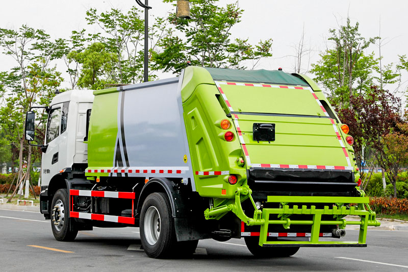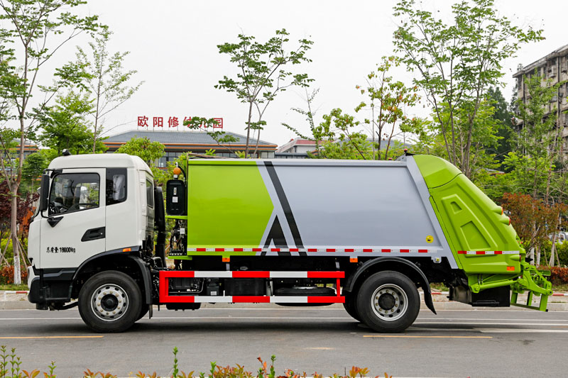 東風天錦壓縮式垃圾車采用機電液一體化技術,借助機、電、液聯合自動控制系統,通過車廂、填裝器和推鏟等專用裝置,實現垃圾倒入、壓碎或壓扁、強力裝填,把垃圾擠入車廂并壓實和推卸。其主要特點是垃圾收集方式簡便、高效、具有自動反復壓縮以及蠕動壓縮功能,壓縮比高,裝載質量大,作業自動化,動力性、環保性好,整車利用效率高。